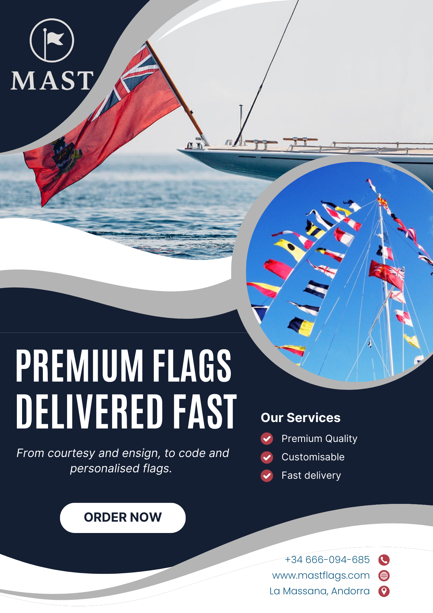 Vendemos banderas hechas a mano, de todas las medidas. También hacemos personalizadas. Nos especializamos en banderas náuticas. Para sustentar cualquier tipo de condiciones.